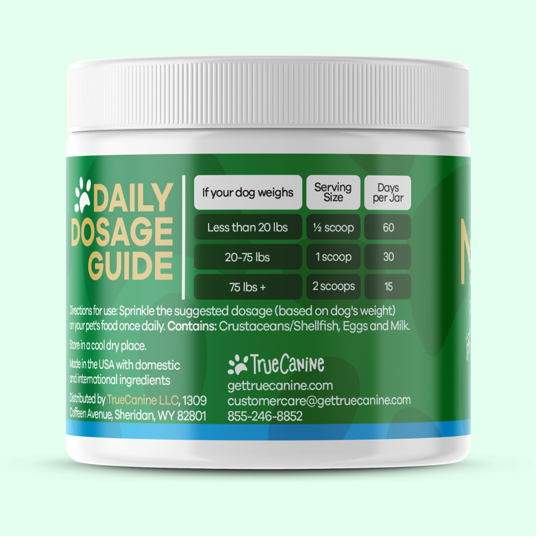 All of True Canine’s products are backed by our 90 Day 100% Money-Back Guarantee. If for any reason you (or your pup) are not happy with our purchase within the first 90 days, contact customer support at customercare@gettruecanine.com for return instructions, and we’ll return every penny you invested back to you.