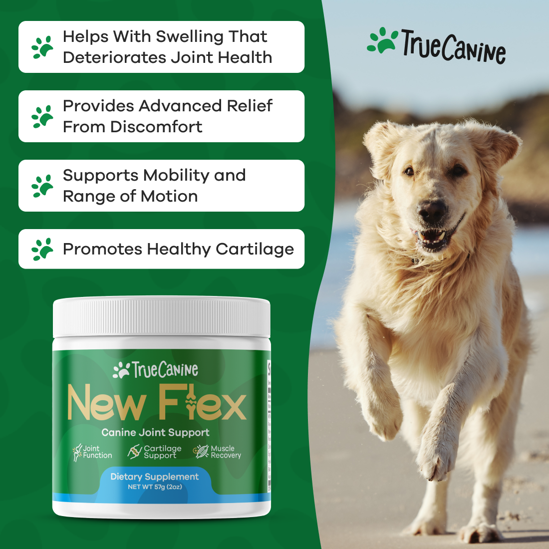 Most pet owners report seeing improvements in their dog's comfort, mobility, and enthusiasm within 3-4 weeks. However, results can vary depending on your dog's age, size, and severity of joint issues. For best results, we recommend using New Flex consistently for at least 2-3 months.