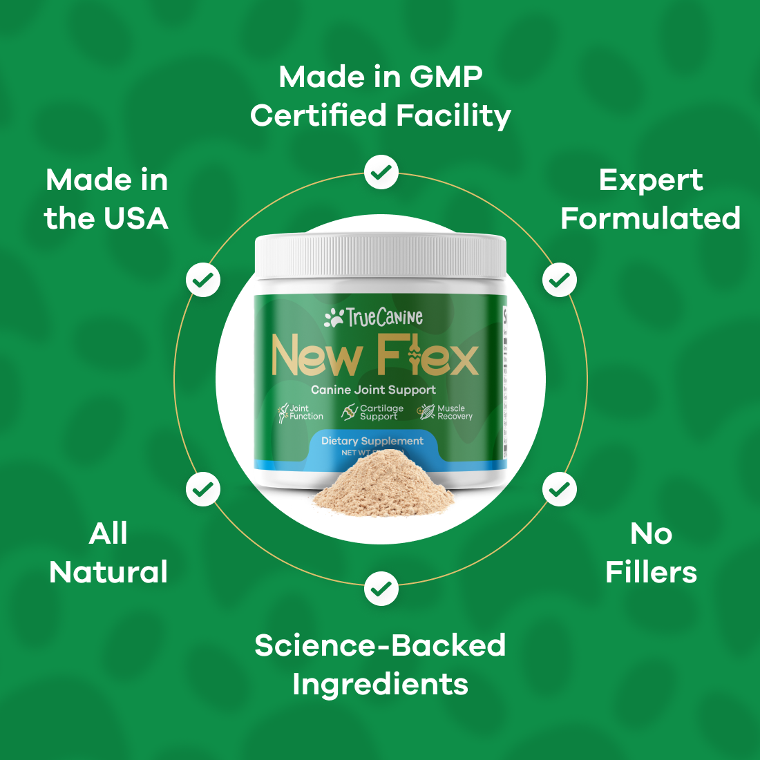 Yes, New Flex is formulated with only natural, high-quality ingredients that are safe for dogs. It does not contain any stimulants, artificial flavors/colors, or preservatives. Our manufacturing facility is USA-based and FDA-registered. As with any supplement, consult your vet before use if your dog has a serious medical condition.