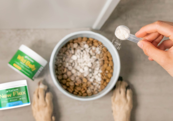 Simply sprinkle the recommended serving size over your dog's food once daily. New Flex has a natural chicken flavor dogs love. You can also mix into a bowl of water or treats. For best absorption, give with a meal.