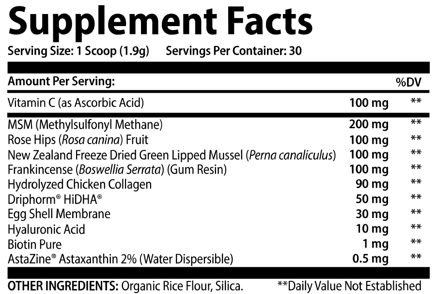 Methylsulfonylmethane supports connective tissue repair by contributing to collagen synthesis. MSM has also been shown to help with swollen joints in clinical trials.